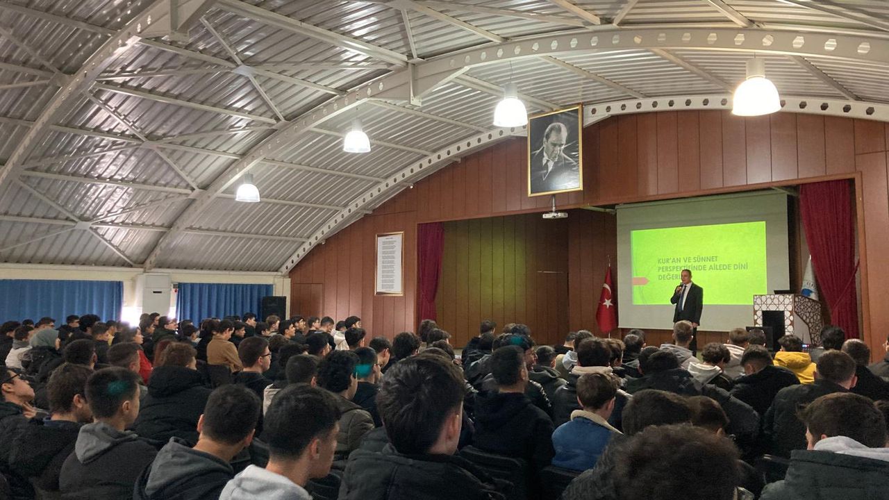 Odunpazarı Müftülüğü Gençlik Koordinatörü Fetullah Yazıcı, Atatürk Mesleki ve Teknik Anadolu Lisesi 12. sınıf öğrencileriyle bir araya gelerek “Peygamberimiz ve Aile” konulu sunum gerçekleştirdi.