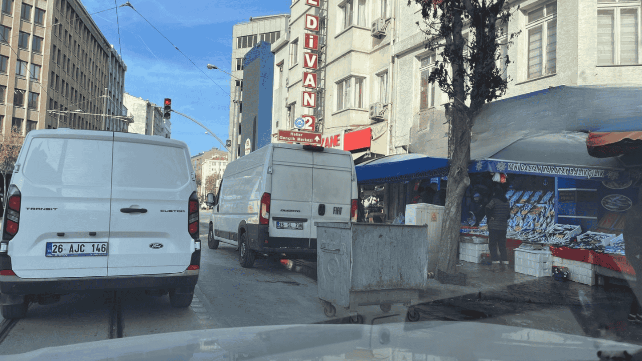 Eskişehir Sakarya Caddesi üzerinde faaliyet gösteren bir balıkçı, sabah saatlerinde yolu işgal ederek sevkiyat yapıyor.