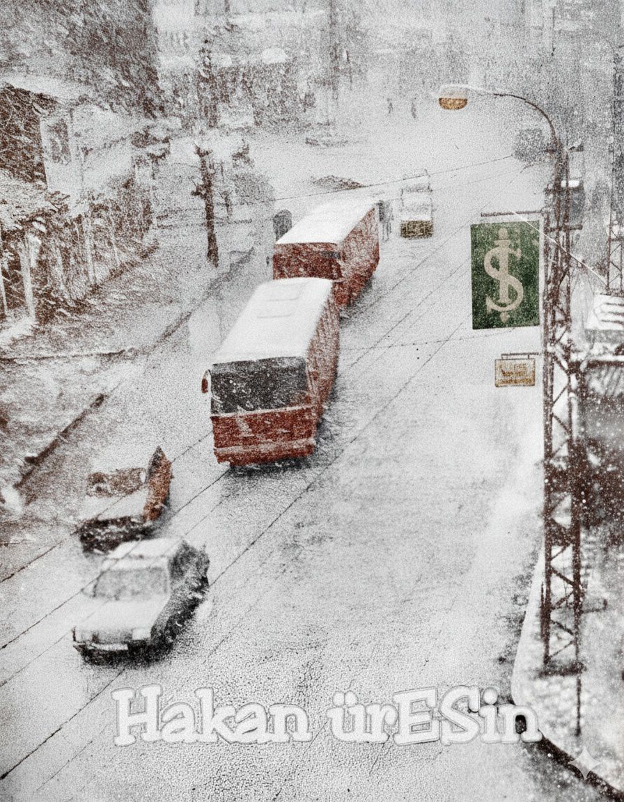 1980'LERDE KÖPRÜBAŞI'NDAN SİVRİHİSAR CADDESİ'NE KIŞ MANZARASI