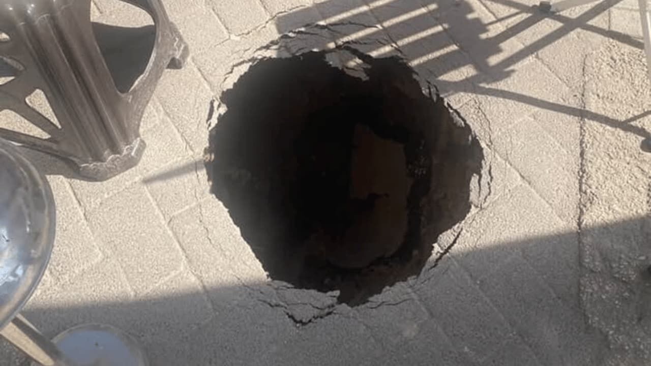 Çevresinde işletmelere ait masa ile sandalyelerin bulunduğu noktada oluşan delik, vatandaşları endişelendirdi.