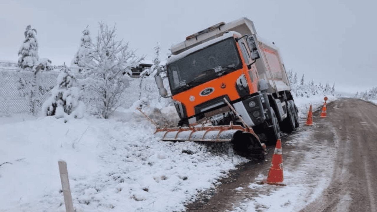 Eskişehir’in Mihalıççık ilçesinde karla mücadele çalışmaları sırasında görev yapan bir kar küreme aracı yoldan çıktı.