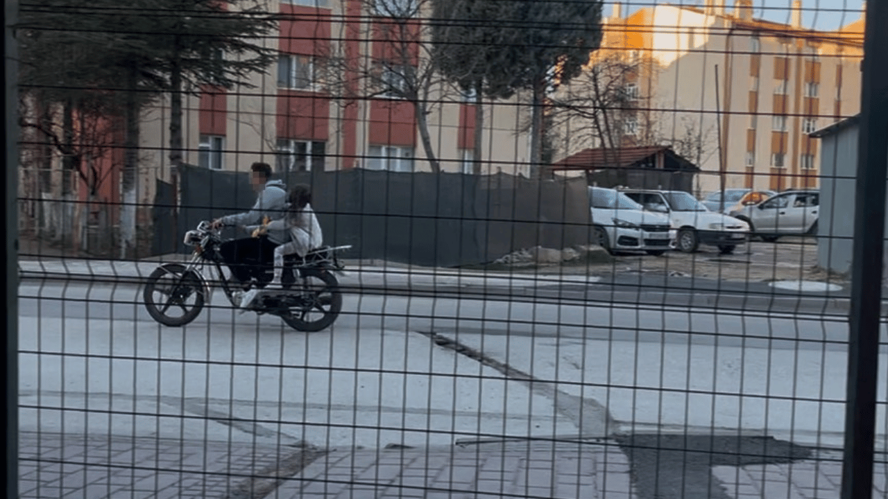 Süratli şekilde seyir eden motosikletteki çocukların kaskız ve korumasız olduğu görüldü.