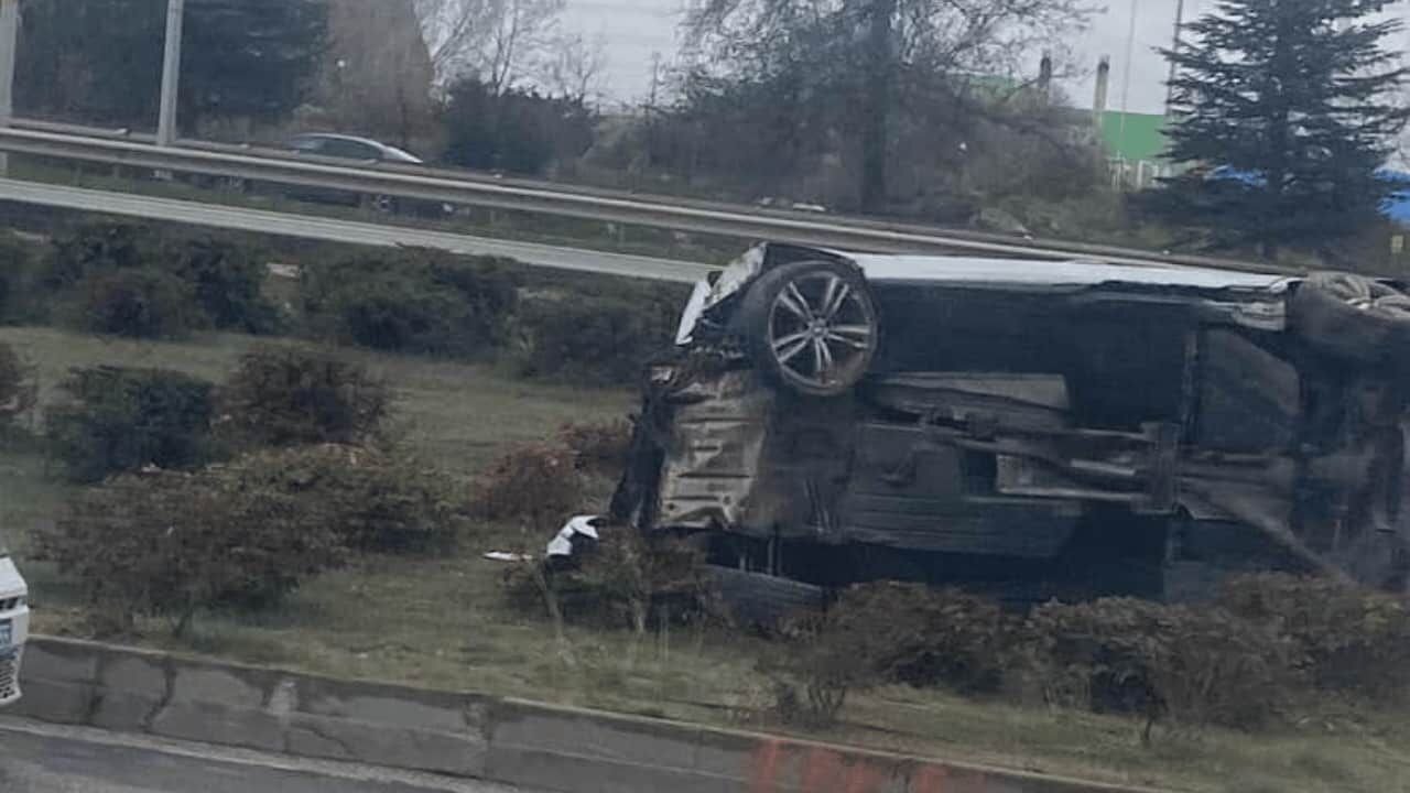 Sabah saatlerinde yaşanan kazada yağmurdan dolayı kayganlaşan yolda kontrolünü kaybeden araç takla attı.
