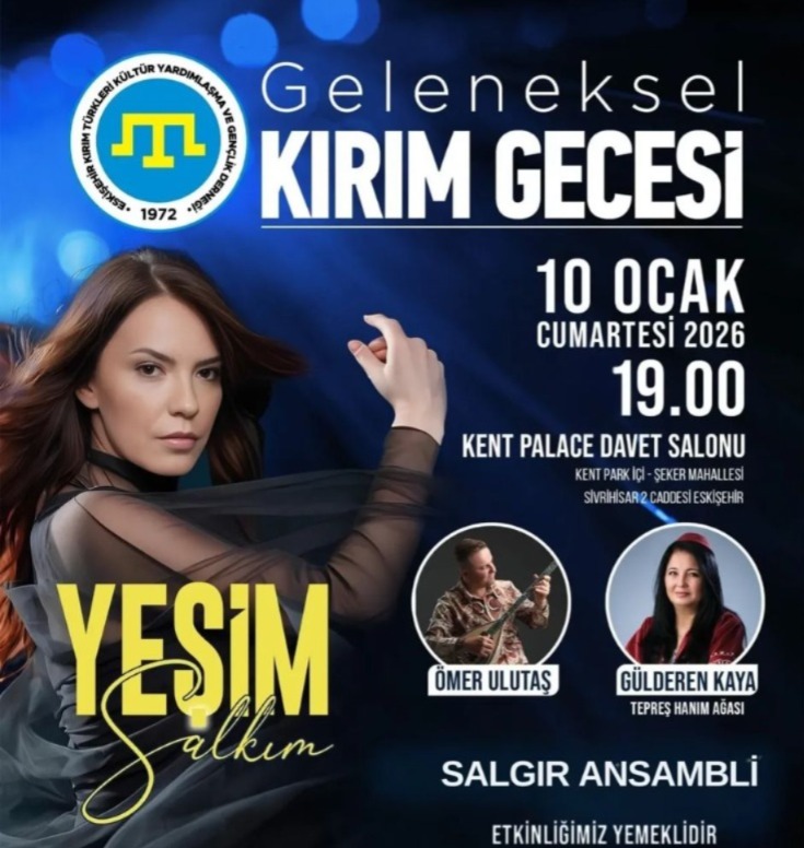 Eskişehir Kırım Türkleri Kültür Yardımlaşma ve Gençlik Derneği, her yıl büyük ilgi gören Geleneksel Kırım Gecesi etkinliğini bu yıl 10 Ocak 2026 Cumartesi günü gerçekleştirecek.