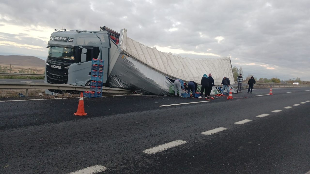 Plakası 06 DNF 618 olan tırın, sürücüsünün direksiyon hakimiyetini kaybetmesi sonucu kontrolden çıkarak yan yattığı bildirildi. Tırda yüklü bulunan sebzelerin bir bölümü yola savrulurken, çevrede kısa süreli trafik yoğunluğu yaşandı.