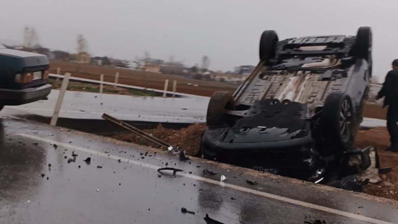 Çarpışmanın etkisiyle otomobil savrularak takla attı.