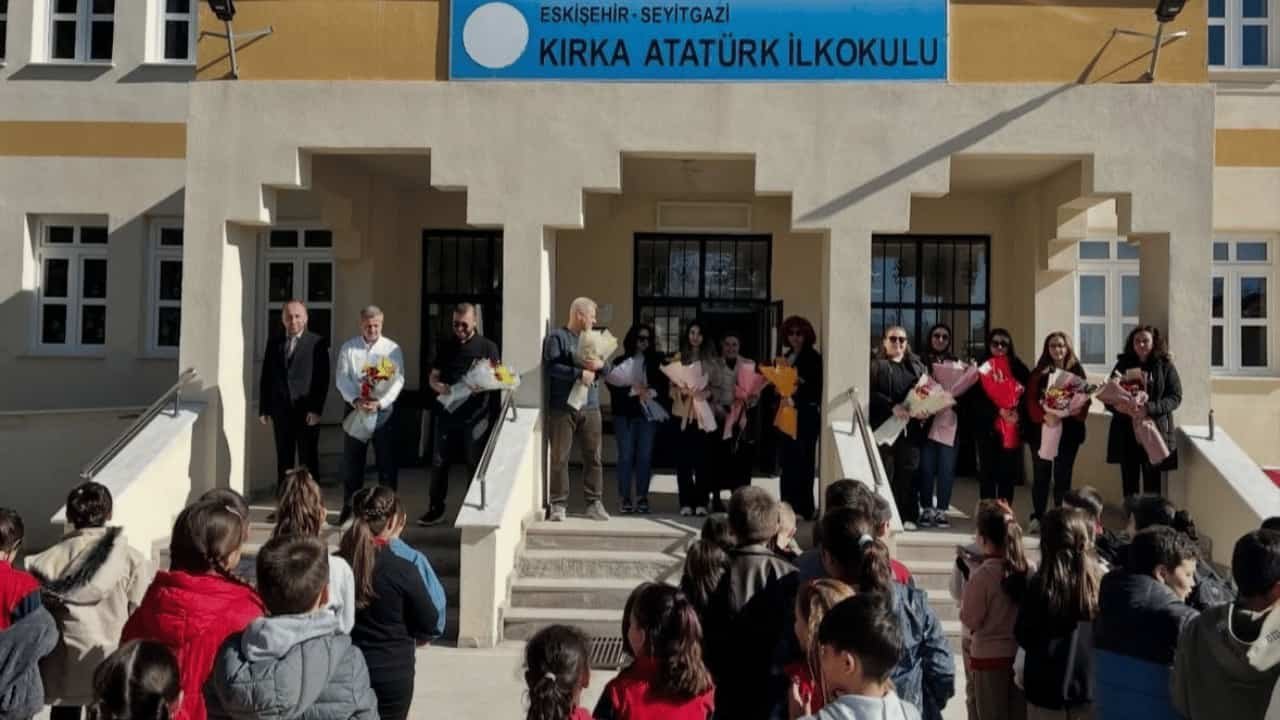 Kırka Atatürk İlkokul öğrencileri, farkındalık oluşturmak amacıyla öğretmenlerine çiçek verdi.
