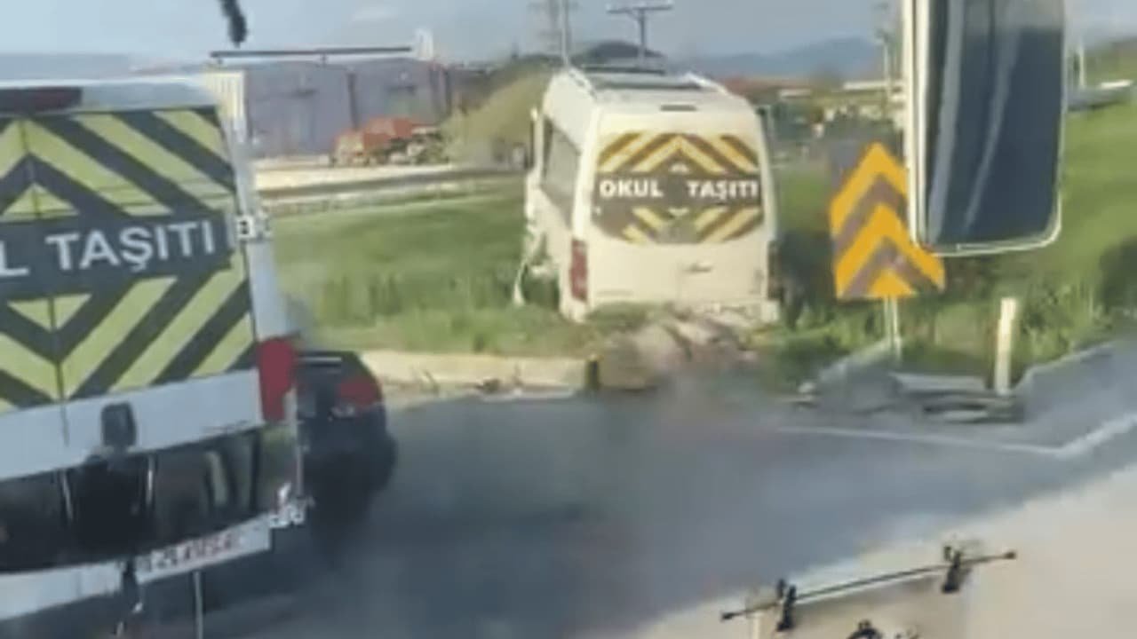 Edinilen bilgilere göre otomobil, okul servis aracına sol taraftan çarptı. Kazanın şiddeti ile okul servisi şarampole girdi.