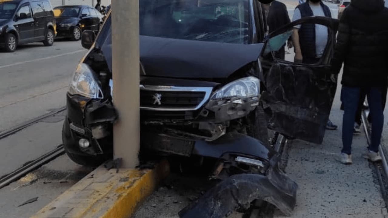 Otomobil tramvay yolunda elektrik akımını sağlayan katener direğine çarptı.