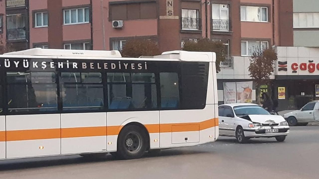 Kavşaktan dönmek isteyen bir otomobil, önünde seyreden belediye otobüsüne arkadan çarptı.