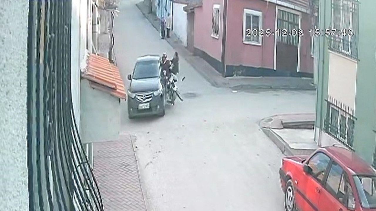 Kazanın ardından motosikletteki iki kişinin aracı şaşkınlıkla izlediği, aracın ön kısmının ise çarpmanın etkisiyle havaya kalktığı görüldü.