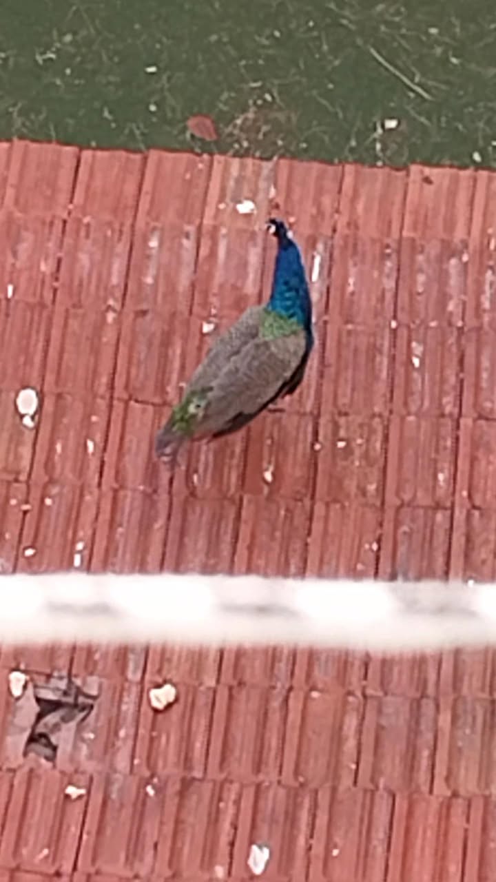 Ev sahibi, çatısında bir tavus kuşu olduğunu fark etti.