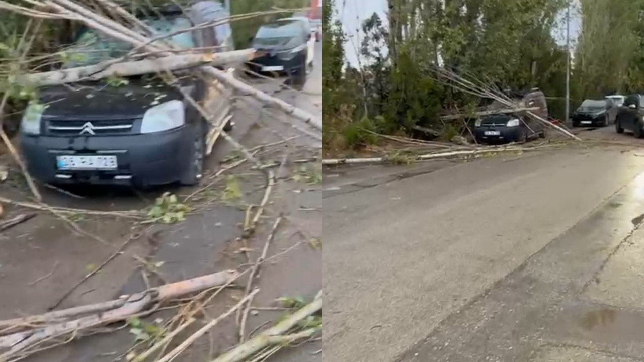 Kopan dallar park halindeki araçların üzerine düşerken, bazı araçlarda maddi hasar meydana geldi.