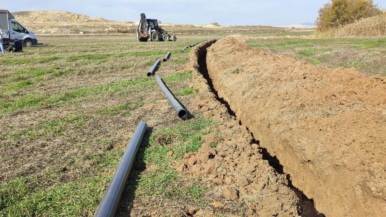 Üreticilerimizin ihtiyaçlarını karşılamak ve verimli tarım alanları oluşturmak için yeraltı sulama borularımızı sahaya döşüyoruz.