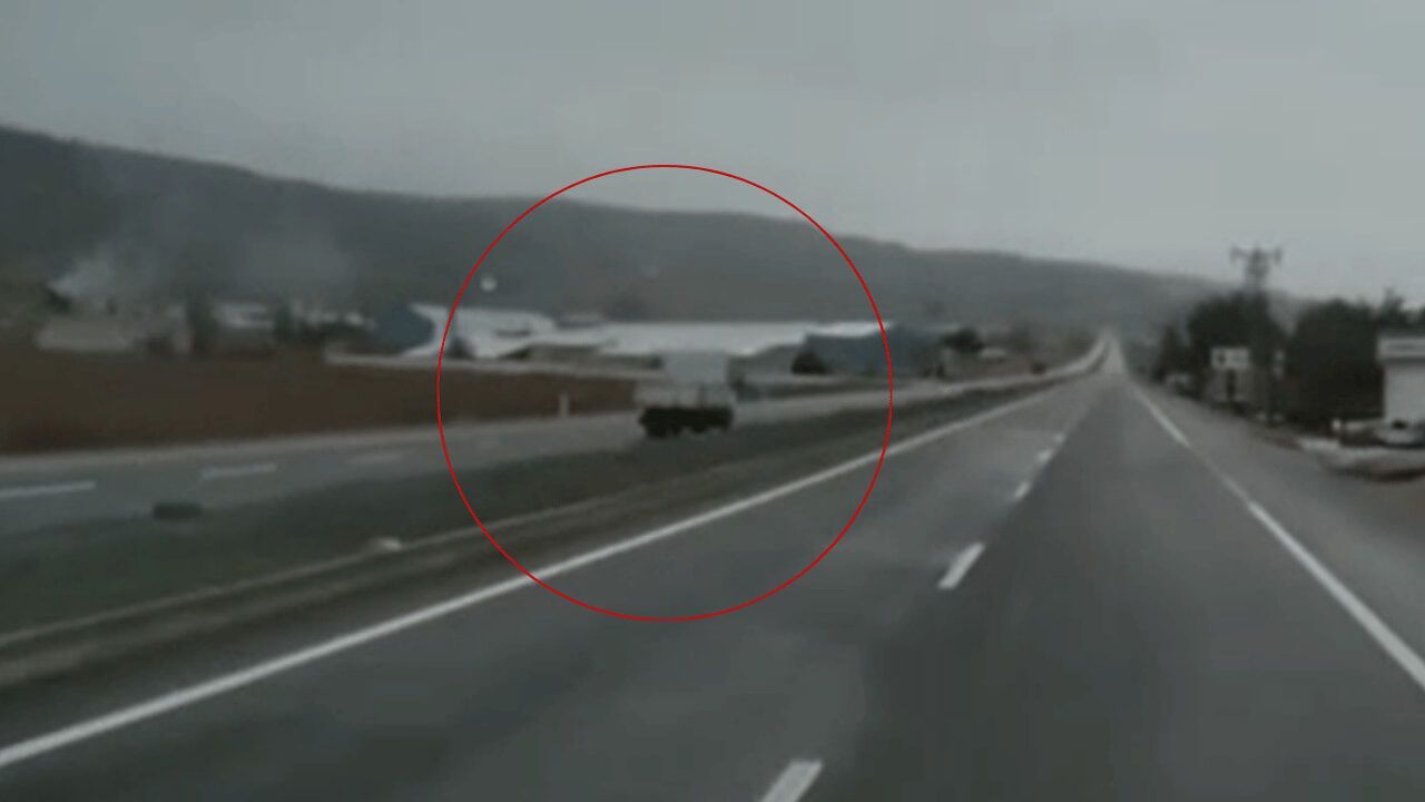 Kamyonet sürücüsünün tehlikeli yolculuğu, bir başka aracın kamerasına tarafından kaydedildi.