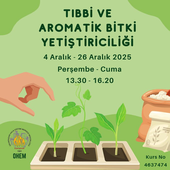 Kurumda düzenlenecek Tıbbi ve Aromatik Bitki Yetiştiriciliği Kursu, 4 Aralık 2025 Perşembe günü başlayacak.