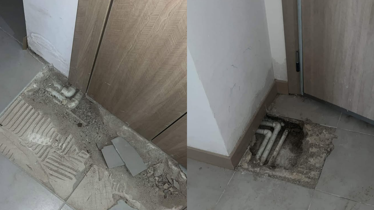 İddiaya göre, hatalı döşenen sıcak su boruları nedeniyle birçok dairede ciddi su kaçakları meydana geldi.