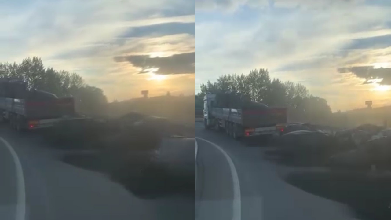 Edinilen bilgilere göre seyir halindeki yüklü kamyonun, virajı keskin alması sonucu yüklerinin bazıları yola savruldu.