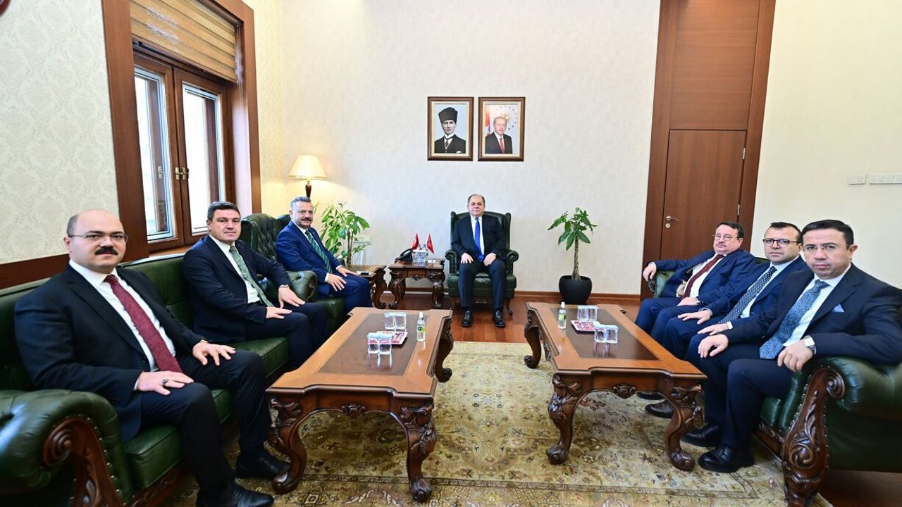 Eskişehir Valisi Hüseyin Aksoy'u Yargıtay Birinci Başkanı Ömer Kerkez başkanlığında Cumhuriyet Başsavcısı Üzeyir Karakülah, Adli Yargı Adalet Komisyonu Başkanı Arif Hamdi Sazak ve diğer ilgililer makamında ziyaret etti.
