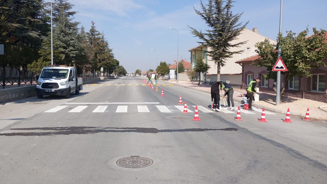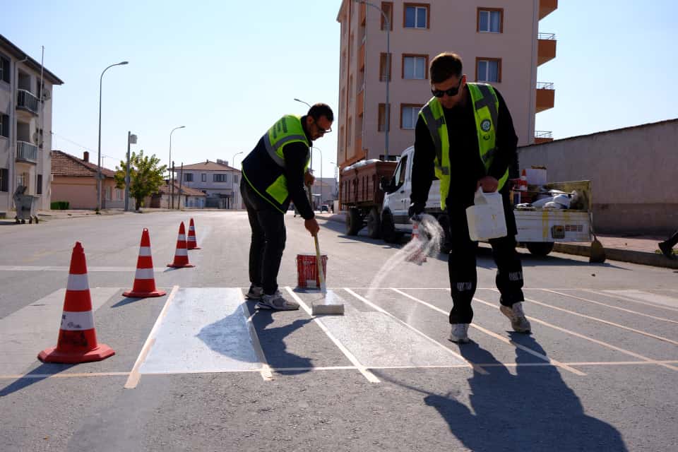 Eskişehir Büyükşehir Belediyesi Trafik Şube Müdürlüğü ekipleri, Mahmudiye ilçesinde bulunan yaya geçitleri ve kasislerde boyama çalışması gerçekleştirdi.