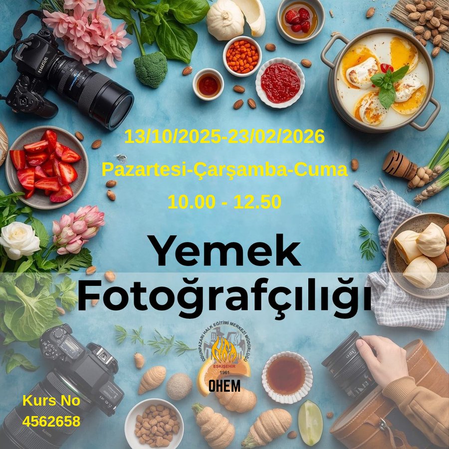 Eskişehir Odunpazarı Halk Eğitimi Merkezi tarafından düzenlenen “Yemek Fotoğrafçılığı Kursu” 13 Ekim Pazartesi günü başlıyor.