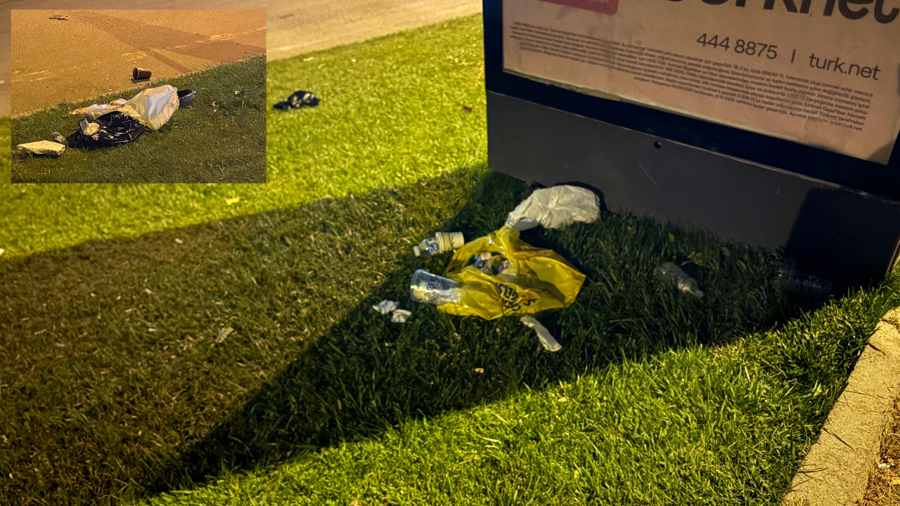 Çöp kutuları bulunmasına rağmen çöplerin doğrudan yol kenarındaki çim alanlara bırakıldığı gözlendi. Kağıt kahve bardakları, pet şişeler ve market poşetleri, çimlerin arasında kötü bir görüntü oluşturdu.