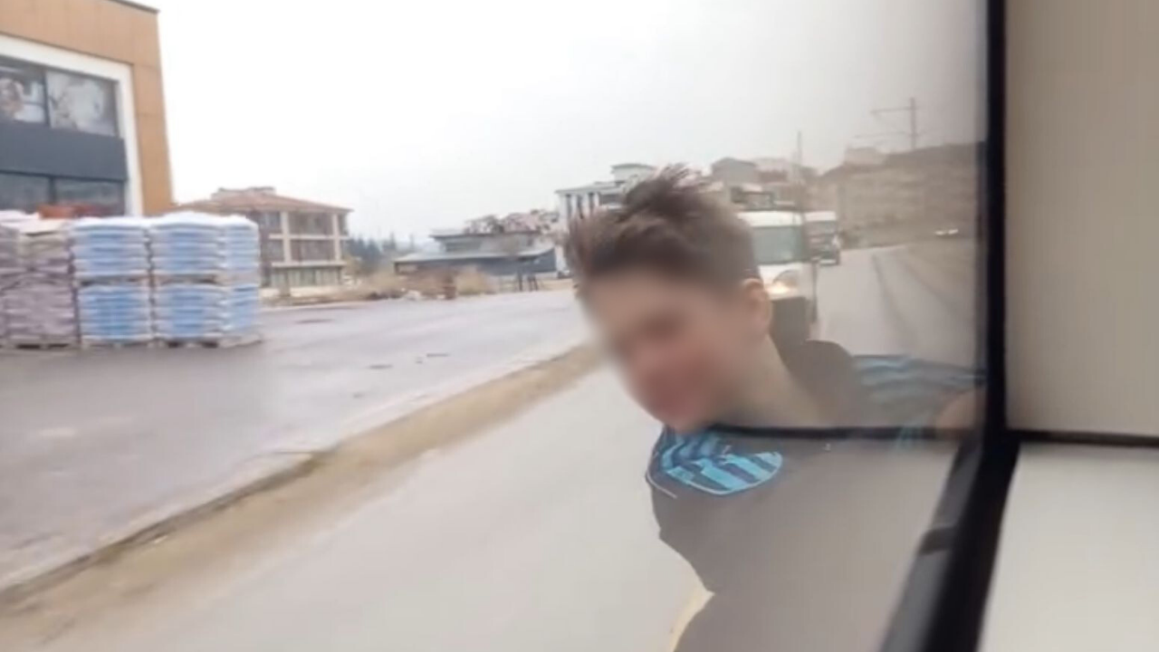 Edinilen bilgilere göre, küçük bir erkek çocuğu tramvayın arka kısmına dışarıdan tutunarak seyahat etti.