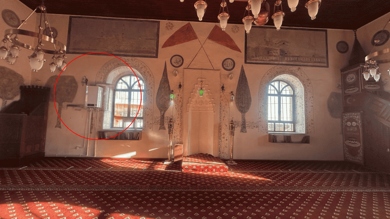 Eskişehir-Mihalıççık ilçesinde bulunan tarihi Camii-i Kebir Camii, manevi atmosferi ve şirin yapısıyla dikkat çekerken, camiye monte edilen kombi tartışma konusu oldu.