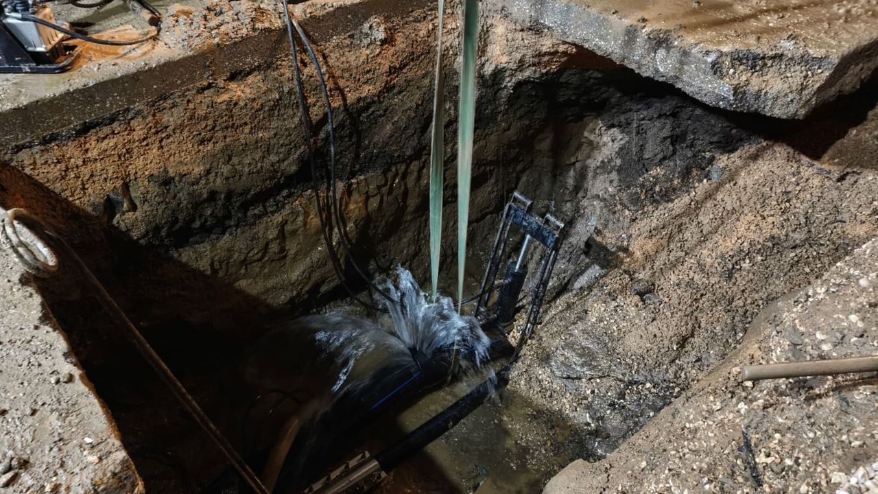 Yapılan açıklamaya göre, 225 mm çapındaki polietilen içme suyu dağıtım hattında oluşan arıza, ekipler tarafından 225’lik saç kelepçesi kullanılarak onarıldı. Onarım çalışmalarının ardından hatta kontrollü şekilde yeniden su verilmeye başlandı.