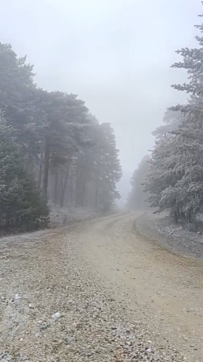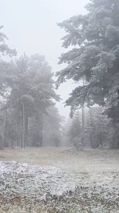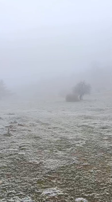 Mevsimin ilk karının düştüğü ilçede boş alanlar ve ağaçlar kısa sürede beyaza büründü.