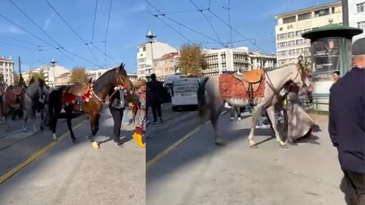 Odunpazarı ilçesi İki Eylül Caddesi üzerinde gerçekleştirilen gezinti sırasında, atların nereye götürüldüğü ve etkinliğin amacı tam olarak bilinmezken, cadde üzerinde bulunan çevre sakinlerinin ilgisini topladı.