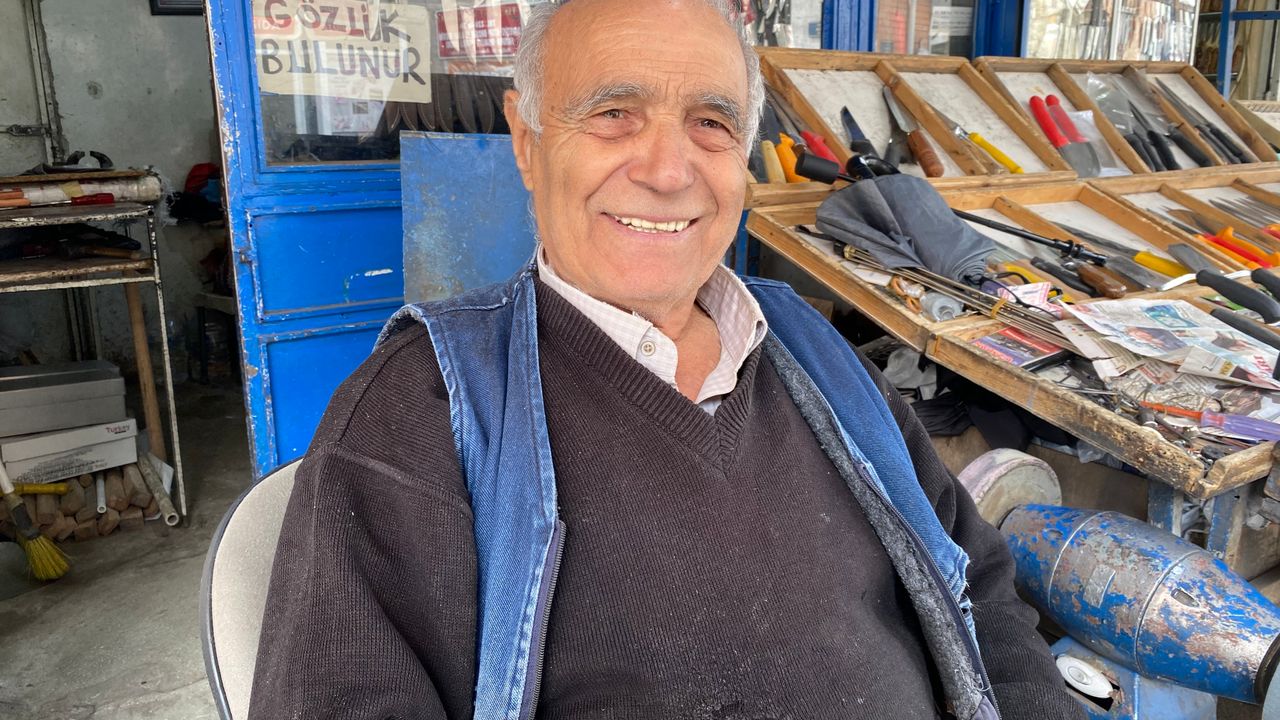 Yaklaşık 40 yıl önce Konya’dan Eskişehir’e gelen Erhan Erdoğan, Sıcaksular Bölgesi’nde kendisine bir dükkan tutarak bıçak bileme mesleğini sürdürmeye başladı. O günden bu yana işini hiç bırakmayan ve mesleğinde emekli olmayı düşünmeyen Erdoğan, şu anda 81 yaşında ve hala her gün işine devam ediyor.