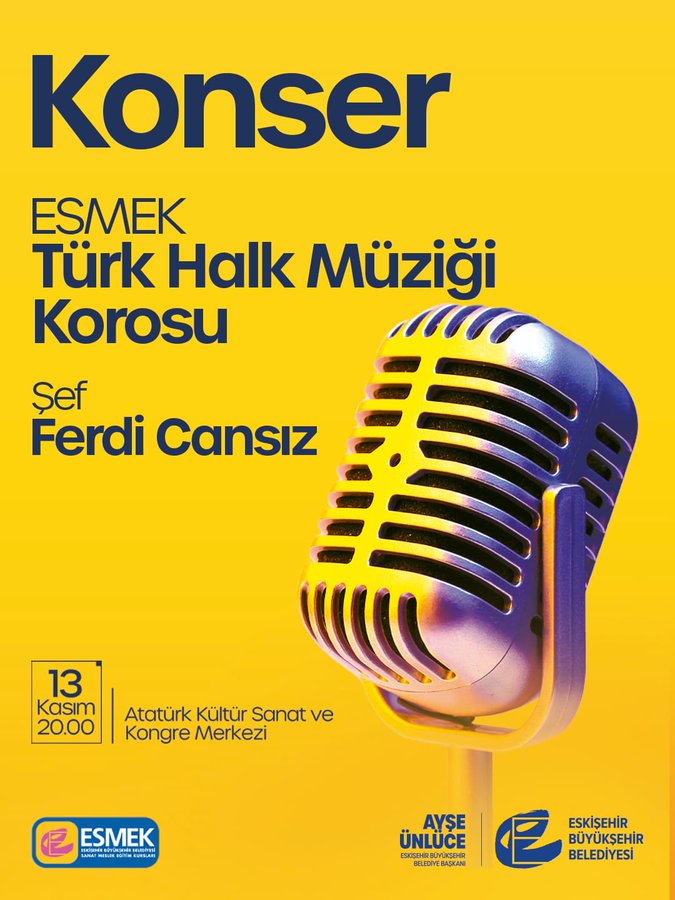 Eskişehir Büyükşehir Belediyesi Sanat ve Meslek Eğitimi Kursları bünyesinde uzun süredir birbirinden güzel konserlere imza atan Türk Halk Müziği Korosu, sanatseverleri yeni bir müzik ziyafetine davet ediyor.