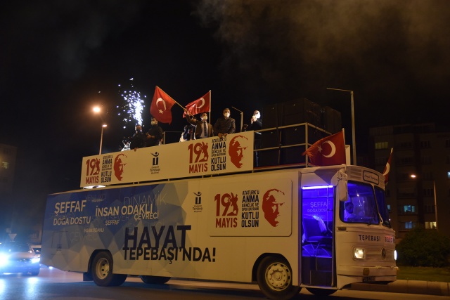 Kent genelinde binalar bayraklar ve Mustafa Kemal Atatürk’ün posterleri ile donatılırken, şehir adeta kırmızı beyaza büründü. Gün boyunca kentte dolaşan Tepebaşı Belediyesi araçlarından yayınlanan marşlar da vatandaşların coşkusuna coşku kattı.