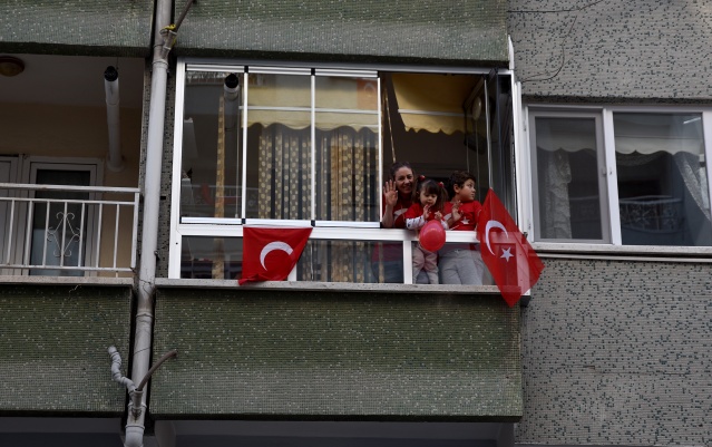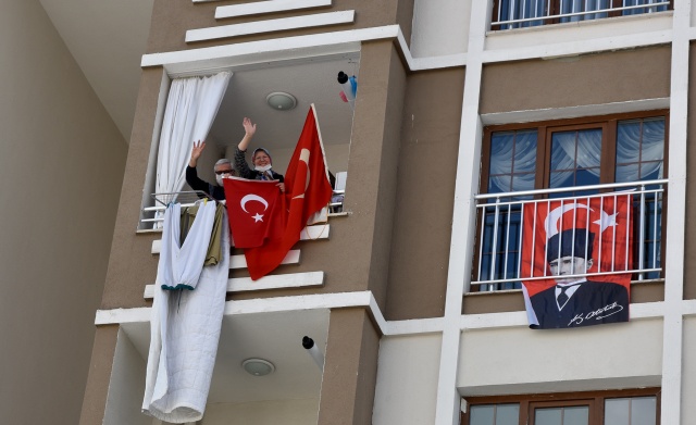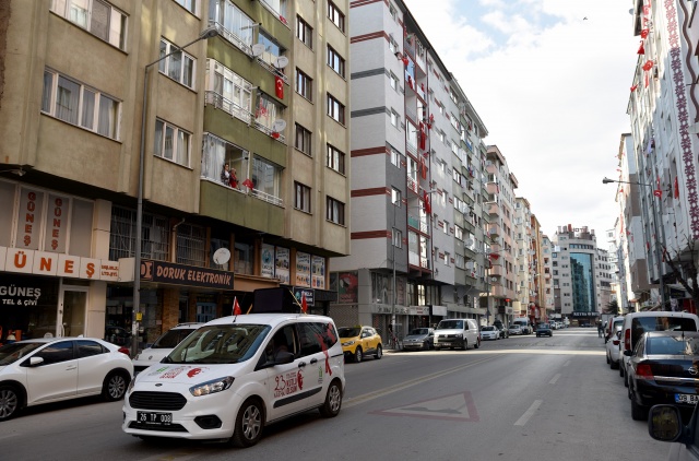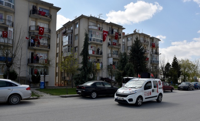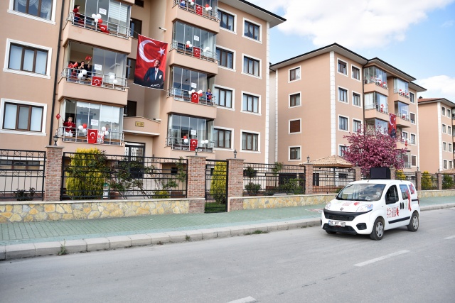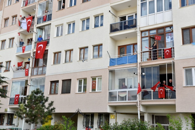 Koronavirüs tedbirleri kapsamında uygulanan sokağa çıkma yasağı nedeniyle evlerinde olan Eskişehirliler, bayramın coşkusunu pencerelere ve balkonlara çıkarak yaşadı. Kent genelinde evler, bayraklar ve Mustafa Kemal Atatürk’ün posterleri ile donatılırken, şehir adeta kırmızı beyaza büründü.