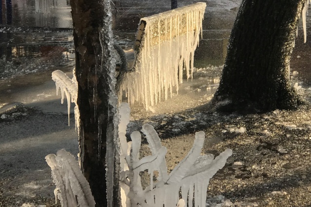 Eskişehir Tepebaşı ilçesi Uluönder Mahallesi’nde bir çocuk parkında fıskiye otomatiği arıza yapınca parkı buz kapladı. Sabah durumu fark eden bölge sakinlerinden Furkan Kızılkaya durumu Tepebaşı Belediyesine bildirirken, yetkililer bölgeye gelerek onarım sağladı.