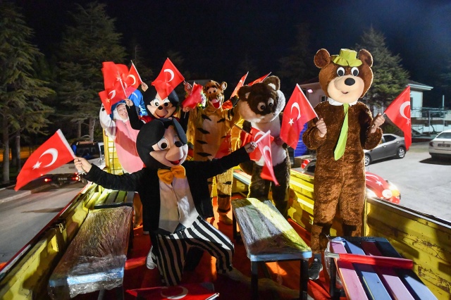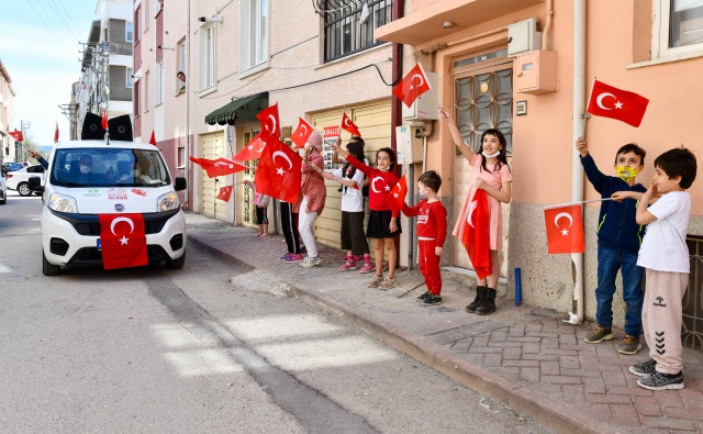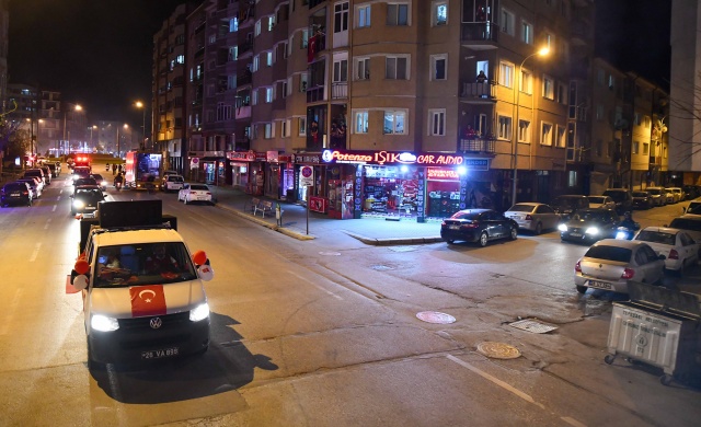 Gün boyunca kent genelinde araçlar ile marşlar çalınırken, vatandaşlar da bayram coşkusunu pencere ve balkonlara çıkarak yaşadı.