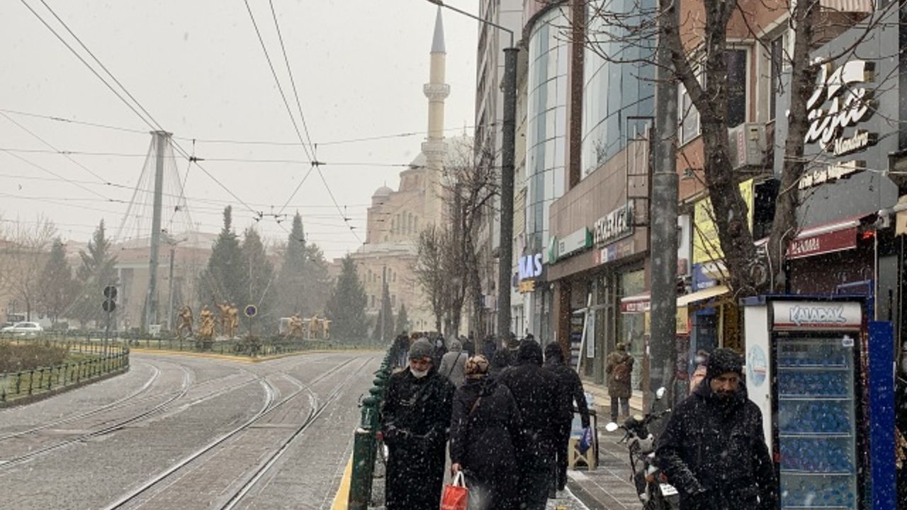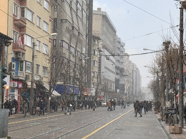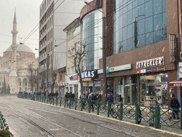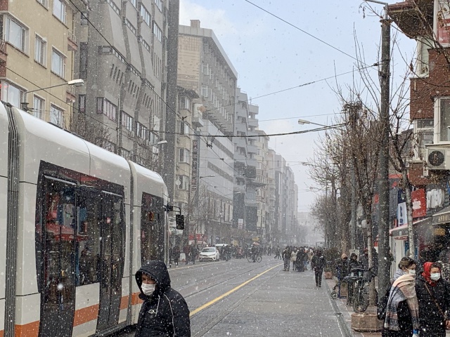 Eskişehir’de öğle saatlerinde başlayan kar yağışı aralıklarla devam ediyor.