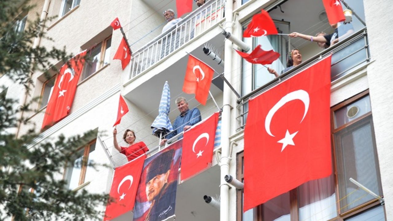 Kent genelinde binalar bayraklar ve Mustafa Kemal Atatürk’ün posterleri ve Türk Bayrakları ile donatılırken, kent adeta kırmızı beyaza büründü.