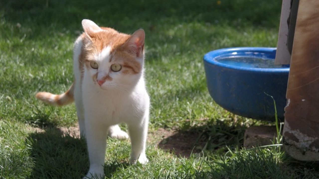 Sıcak günlerde su içmeye ihtiyaçlarını belediyeler ve hayvan severlerin bıraktıkları su kaplarıyla gideren patili dostlardan bazıları, fotoğrafları çekilirken adeta gülerek poz verdi.