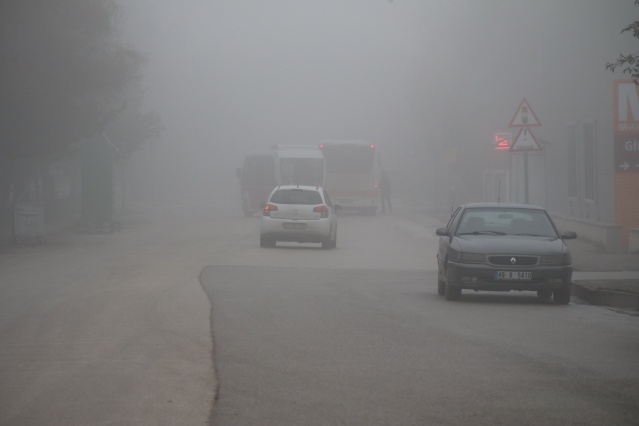 Çevre yolunu ve kent merkezindeki yolları kullanmak zorunda kalan sürücüler, sis farlarını açarak trafikte daha dikkatli ilerlemeye çalıştı.