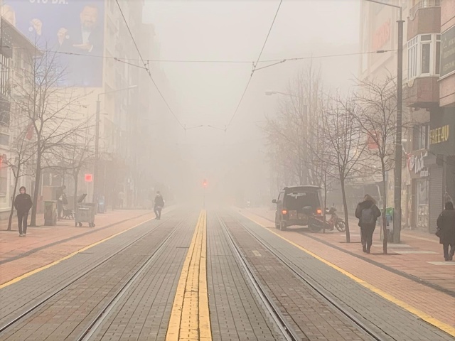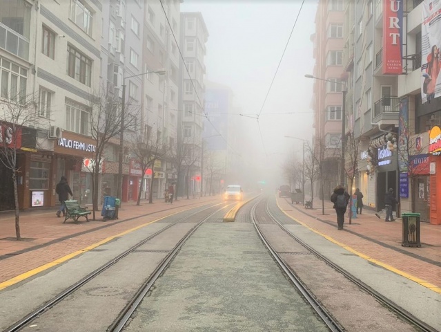 Eskişehir kent merkezinde sabah saatlerinde etkisini gösteren yoğun sis görüş mesafesini düşürürken, güzel görüntülerin de oluşmasına sebep oldu.