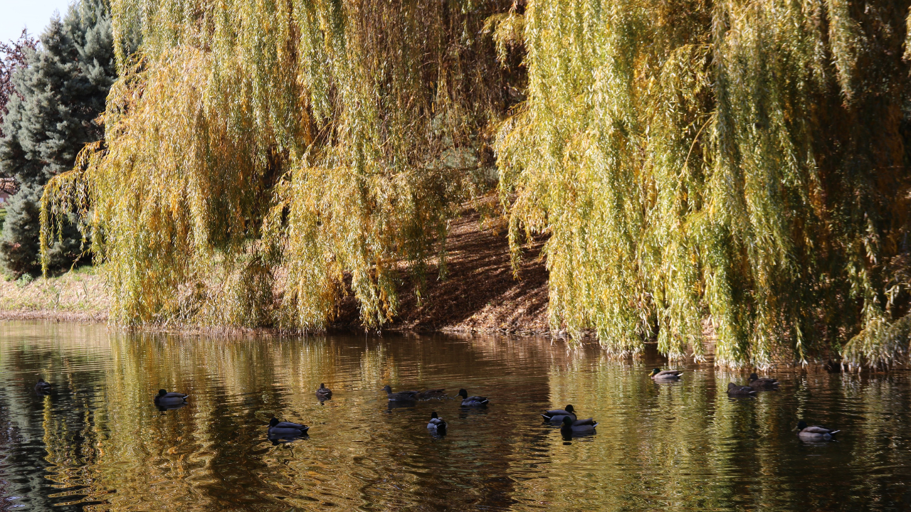 Sonbahar renklerinin büründüğü Porsuk Çayı'nda yeşilbaşların ve diğer ördeklerin keyifle yüzdüğü görüldü. Ördeklerin zaman zaman su kenarından, bazen de uçarak Porsuk'a girdiği gözlendi.