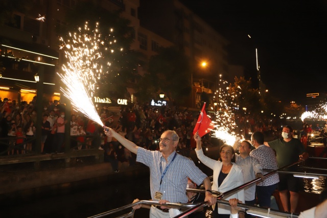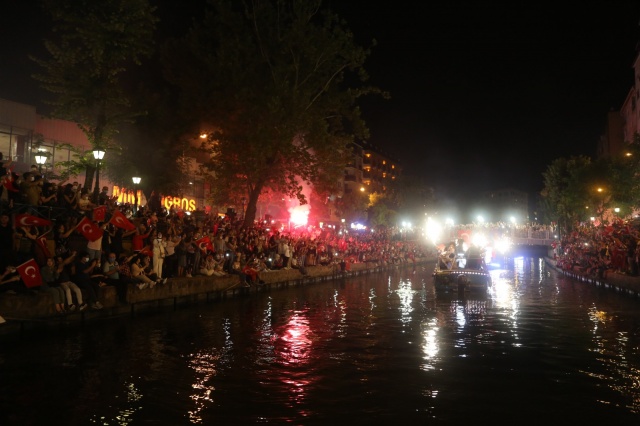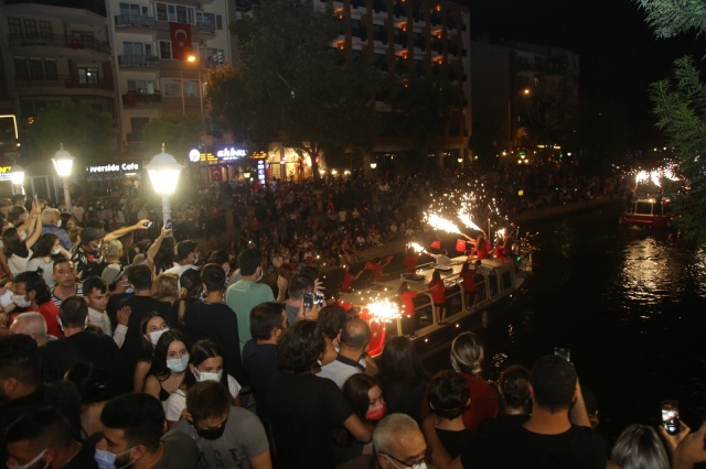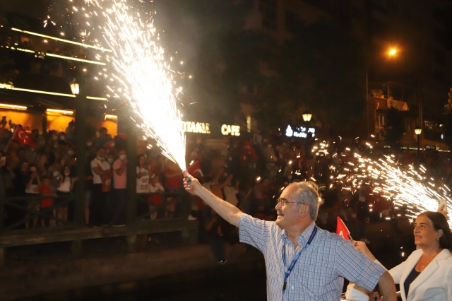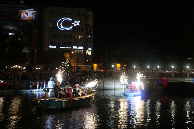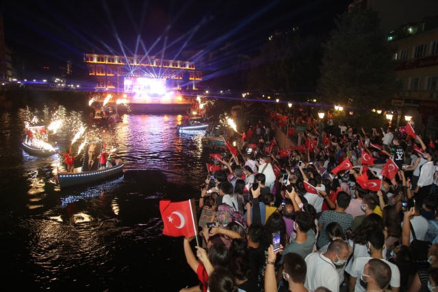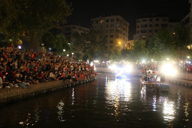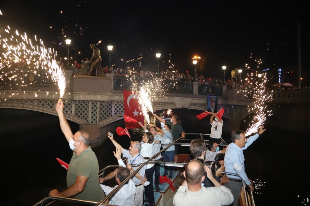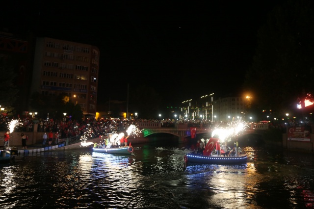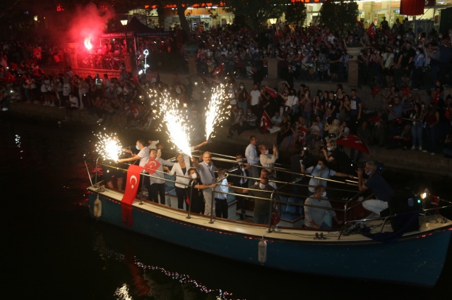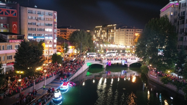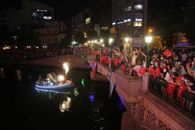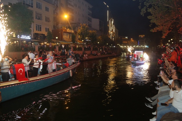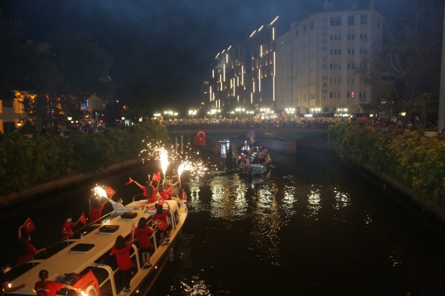 Zafer Bayramı kutlamaları kapsamında Büyükşehir Belediyesi’nin gerçekleştirdiği Porsuk’ta botlarla fener alayını binlerce Eskişehirli büyük coşkuyla izledi. Fener alayı başlamadan önce Köprübaşı’nda kurulan ekranlarda Atatürk ve cumhuriyet temalı videolar yayınlanırken, yapılan ışık gösterilerini vatandaşlar telefonlarıyla kayıt altına aldı.