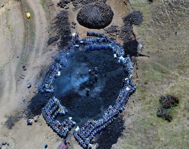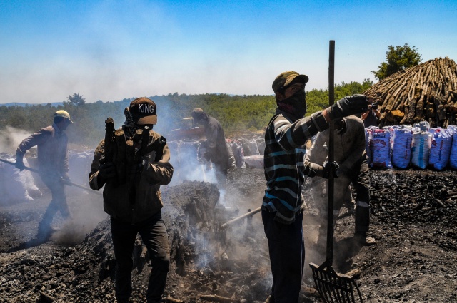 Daha sonra üzeri saman ve toprakla kaplanan odun tepeleri mangal kömürü elde edilmek için tam 1 ay boyunca içten yakılıyor. Ormanlık alanda yapılan işlemler sırasında yangın çıkmaması için de gece-gündüz nöbet tutuluyor. Kömürleri parçalayıp çuvallara dizen işçiler, yoğun duman ve sıcaklık altında günde 13-14 saat çalışıyor.