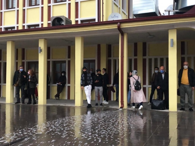 Evlerine ıslanmadan dönebilmek için taksi sırasına giren vatandaşların yanı sıra, ıslanmamak için bina saçakları önünde yağmurun dinmesini bekleyenler de oldu.