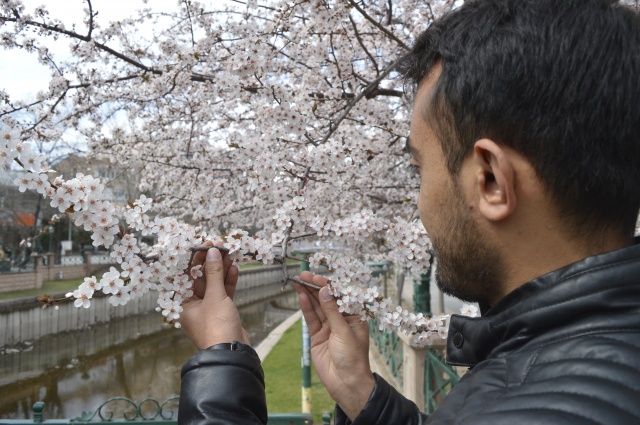 Buraya gelen vatandaşlar ise bu ağcın yanında hem fotoğraf çekiyor hem de çiçeklerini dokunarak doğayı yakından hissediyor. Şehrin birçok yerinde açan çiçekleri çevredeki insanları doyumsuz manzaralarla mutlu ediyor.