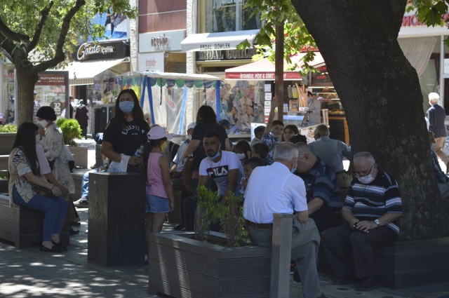 Hiç maske takmayanların dışında bazı vatandaşların maskeleri çene, el ve kollarında bulunurken, bazıları ise sadece kulaklarına takıyor. Ayrıca maskelerini düzgün takanların çoğu da sosyal mesafeyi pek dikkate almayarak yazın tadını çıkartıyor.