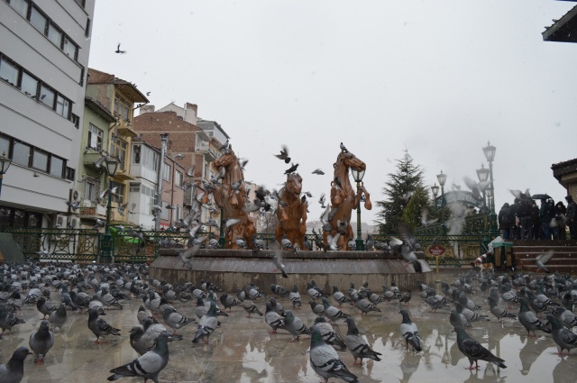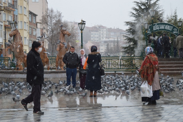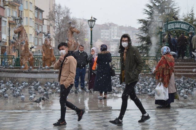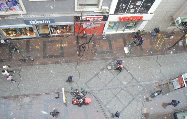 Kentin yüksek kesimlerinde sabah saatlerinde etkili olmaya başlayan kar yağışı öğle saatlerinde şehir merkezinde de etkisini gösterirken, ortaya çıkan manzara herkese hayran bıraktı.