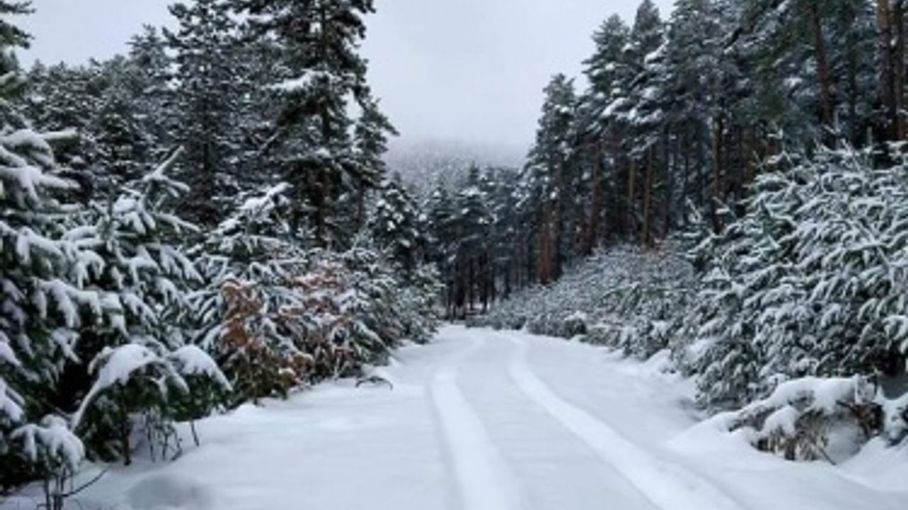 Karayolunun yanı sıra yüksek çam ağaçlarını kaplayan karların beyaz örtüsü ile yeşil güzel bir renk cümbüşü oluşturdu.